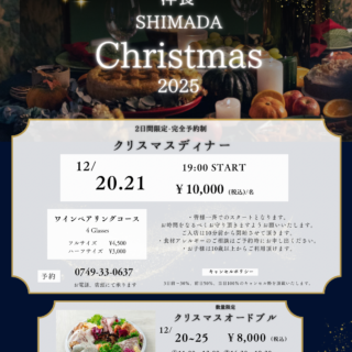 土曜・祝日ランチ/11:30~14:45(L.O 13:30)ディナー/18:00~21:30(L.O 20:30)