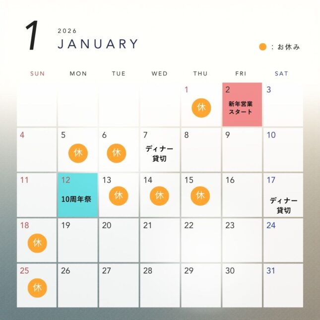 今年もたくさんの皆様と美味しい時間を過ごせることを楽しみにしております。